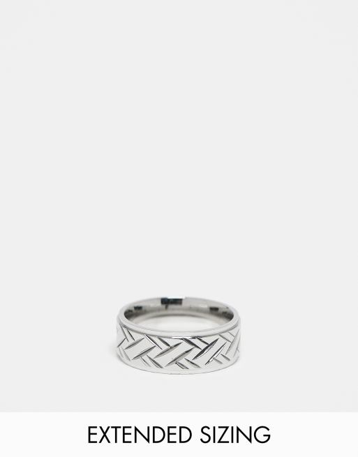 ASOS DESIGN waterproof stainless steel band ring with engraving in silver tone