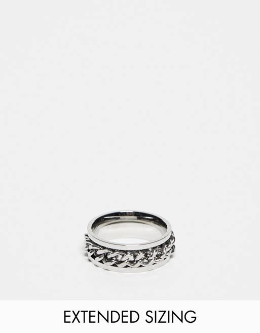 ASOS DESIGN waterproof stainless steel band ring with moving chain in silver tone