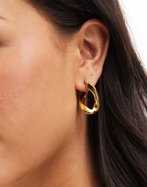 ASOS DESIGN waterproof stainless steel hoop earrings with twist chain detail in gold tone