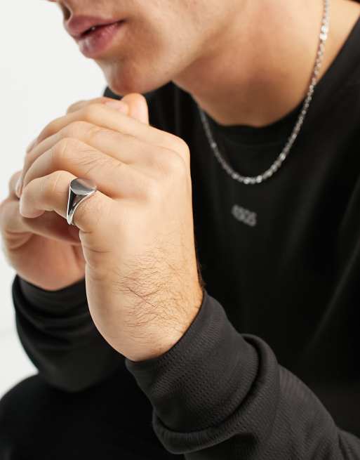 ASOS DESIGN waterproof stainless steel pinky ring in silver tone