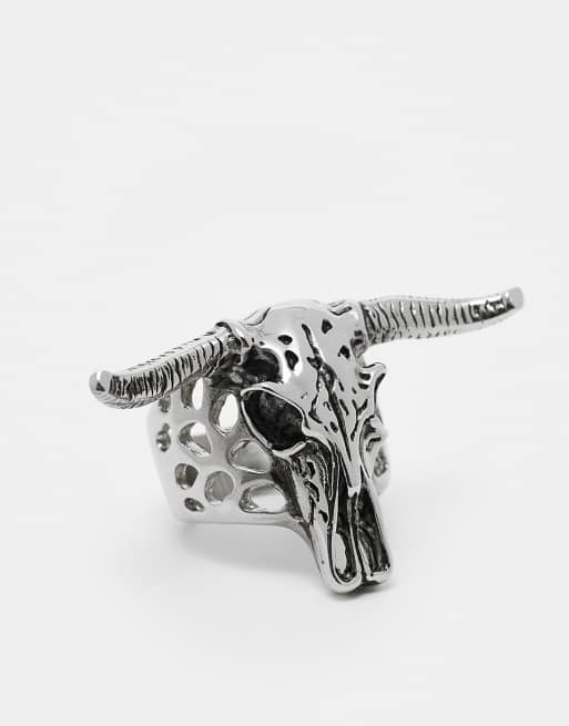 ASOS DESIGN waterproof stainless steel ram skull ring in silver tone