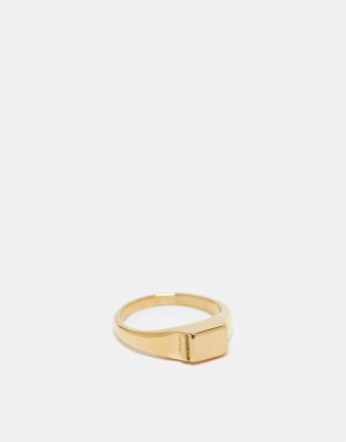 ASOS DESIGN waterproof stainless steel signet ring with brushed top in gold tone