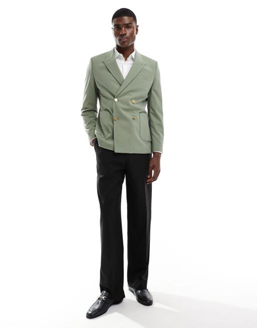 ASOS DESIGN wedding skinny blazer with gold buttons in green