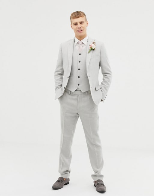 ASOS DESIGN wedding skinny suit in ice grey wool mix texture