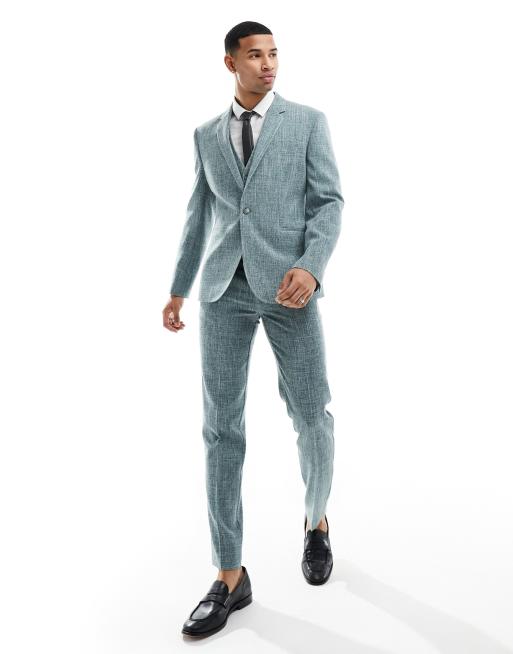 ASOS DESIGN wedding slim suit jacket in green crosshatch