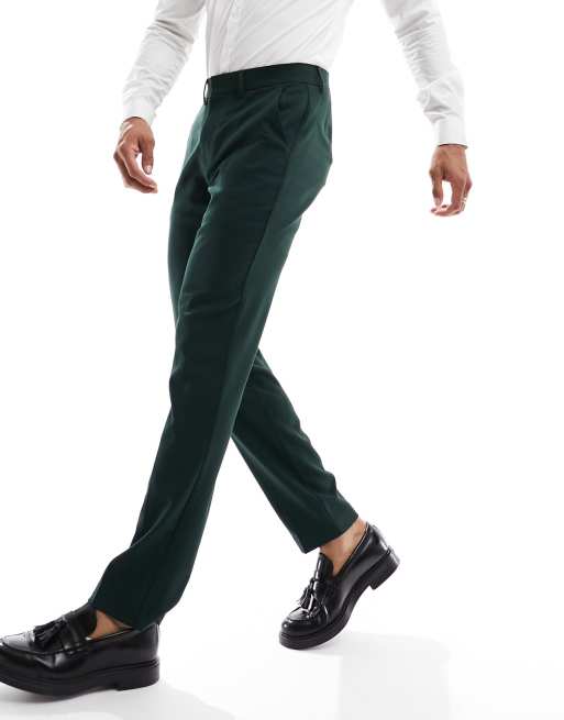 ASOS DESIGN wedding slim suit pants in forest green microtexture