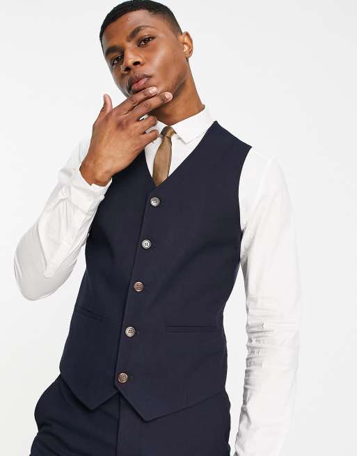 ASOS DESIGN wedding slim waistcoat in navy micro texture