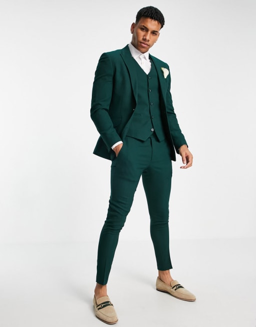 ASOS DESIGN wedding super skinny suit in forest green micro texture