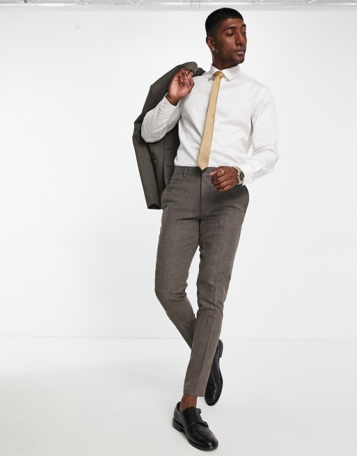 ASOS DESIGN wedding super skinny suit in micro texture in brown