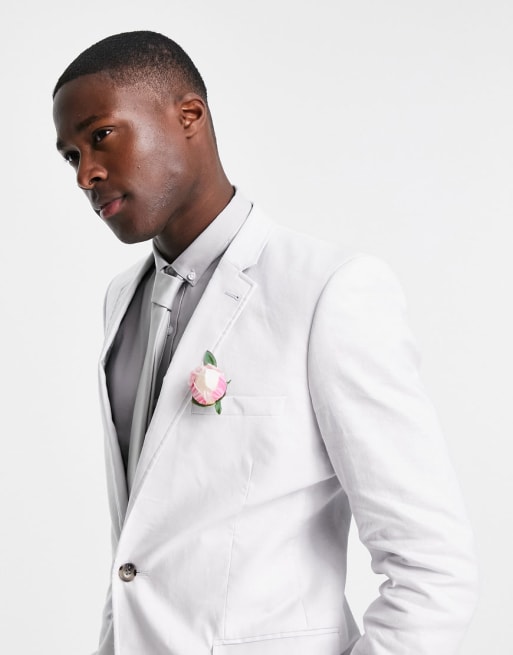 ASOS DESIGN wedding super skinny suit in pastel grey cotton linen