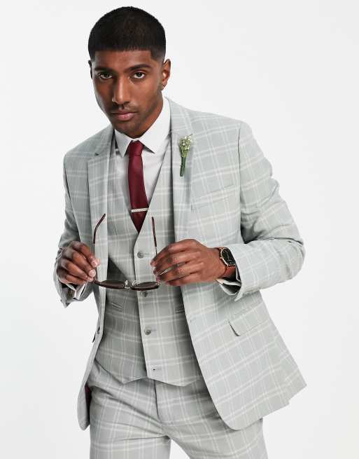 ASOS DESIGN wedding super skinny suit jacket with windowpane check in grey