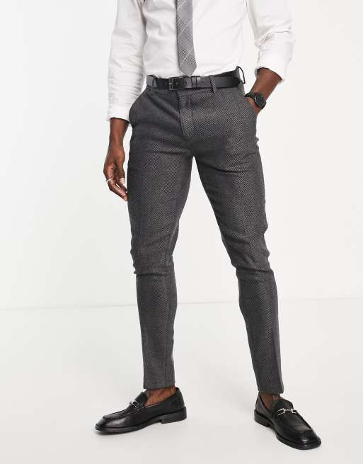 ASOS DESIGN wedding super skinny suit pants in charcoal herringbone