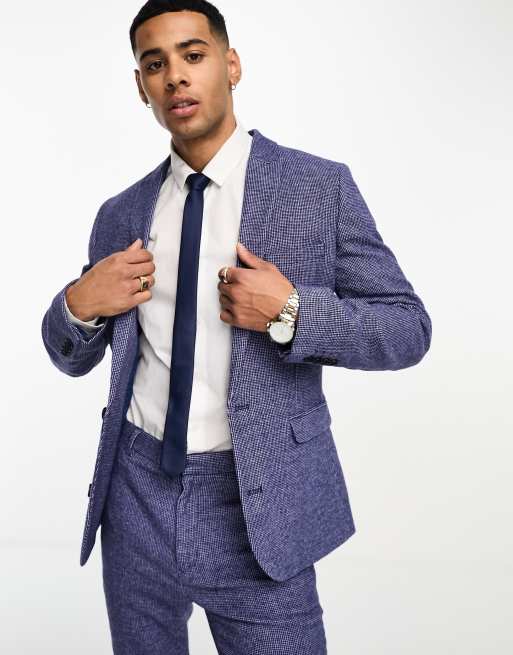 ASOS DESIGN wedding super skinny wool mix suit jacket in dark blue puppytooth