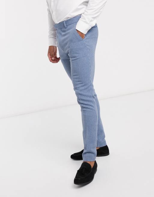 ASOS DESIGN wedding super skinny wool mix suit pants in blue houndstooth check