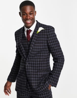ASOS DESIGN wedding super skinny wool mix suit with grid window check in navy