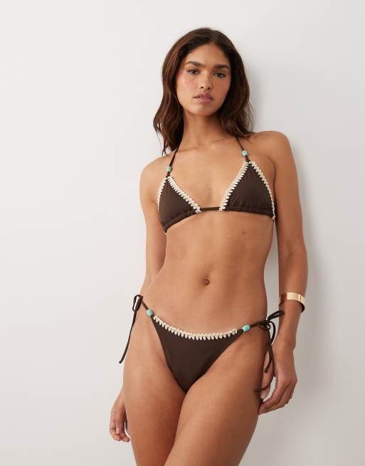 ASOS DESIGN Whitney whip Rio high leg tie side bikini bottoms in brown