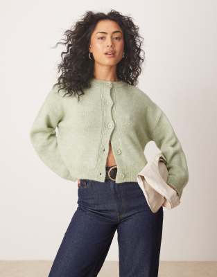 ASOS DESIGN wide cuff knitted cardigan in soft green