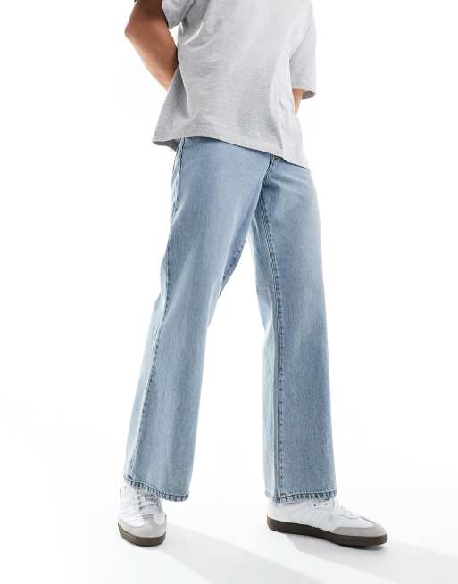 ASOS DESIGN wide flared jeans in mid wash blue