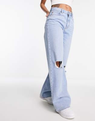 ASOS DESIGN wide leg dad jeans in light blue with rips