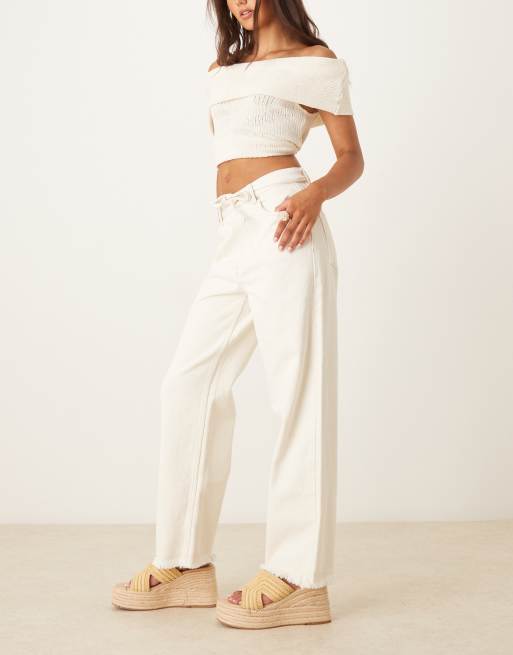ASOS DESIGN wide leg dad jeans with belt in white