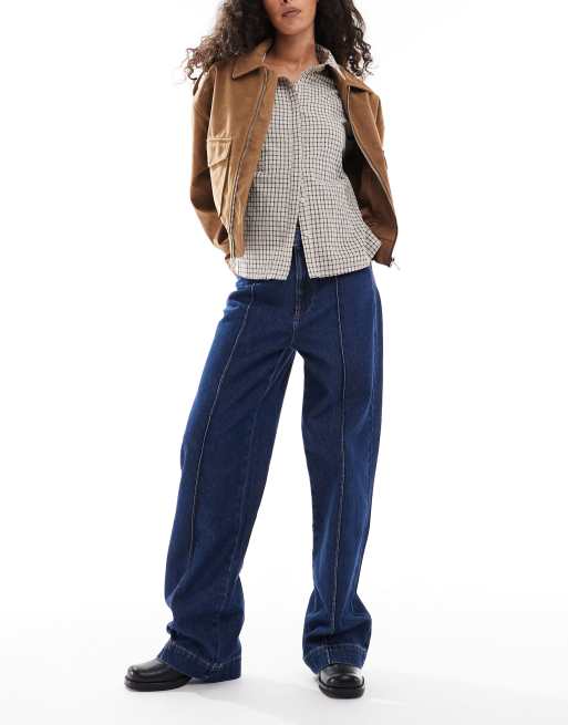 ASOS DESIGN wide leg seam front jeans in dark mid blue
