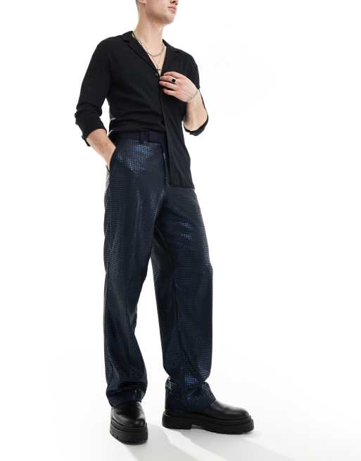 ASOS DESIGN wide leg smart pants with floral sequins in navy