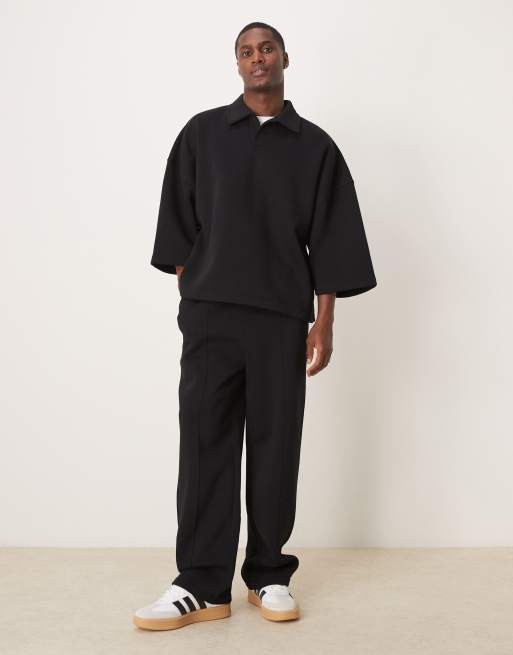 ASOS DESIGN wide leg trackies with pin tuck in black (part of a set)