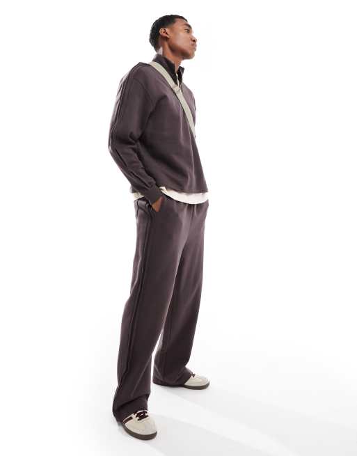 ASOS DESIGN wide leg trackies with pin tuck seam detail in brown (part of a set)