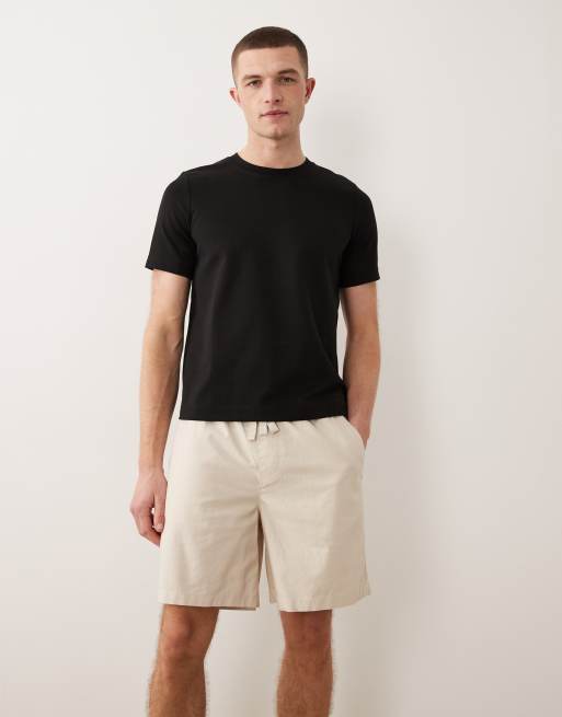 ASOS DESIGN wide linen blend shorts in mid length in stone