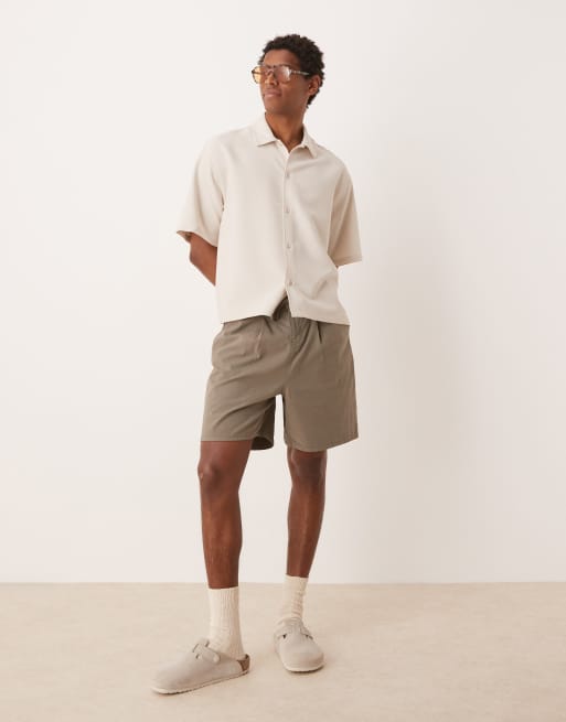 ASOS DESIGN wide mid-length pleated shorts with drawstring in khaki