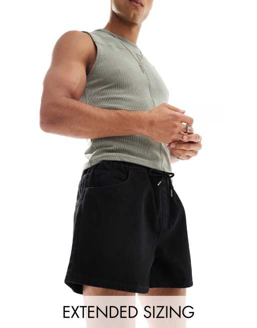 ASOS DESIGN wide shorter length denim shorts with elasticated waist in black