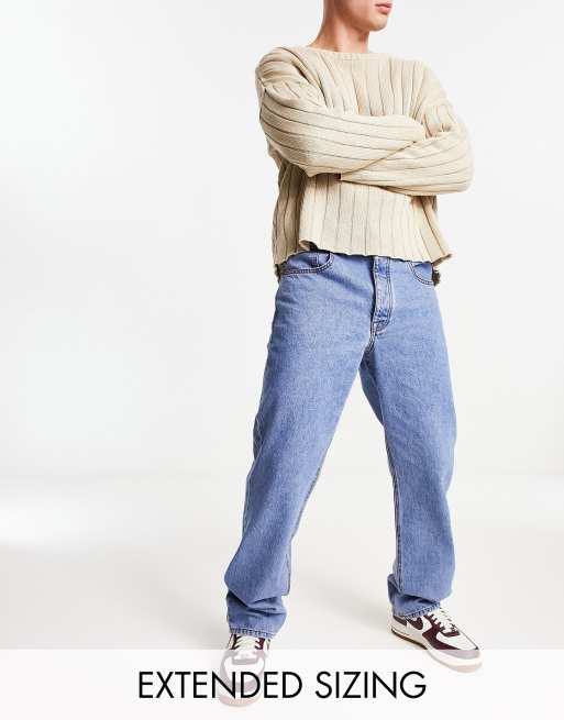 ASOS DESIGN wide straight leg jeans in mid wash blue