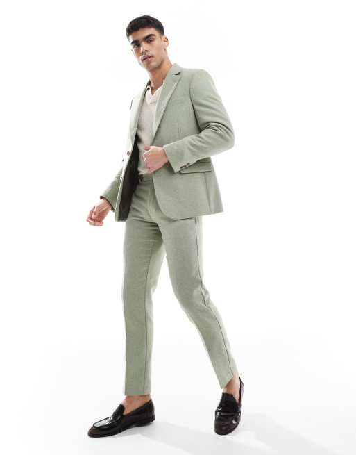 ASOS DESIGN wool blend slim suit pants in green weave