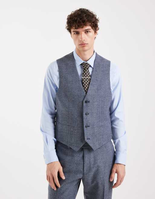 ASOS DESIGN wool-mix slim suit waistcoat in grey herringbone