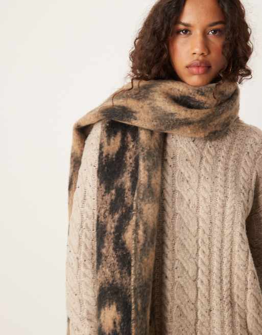 ASOS DESIGN woven scarf with fluffy leopard design