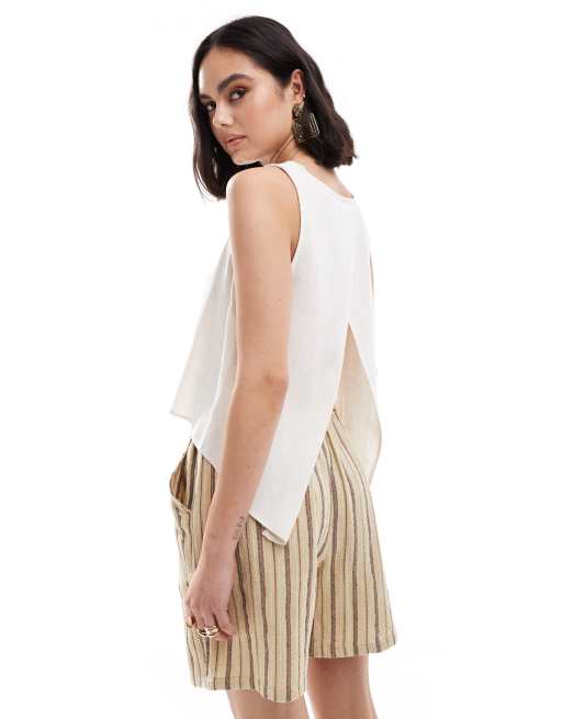 ASOS DESIGN wrap back linen top in natural