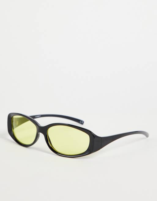 ASOS DESIGN y2k runner sunglasses with yellow lens in black