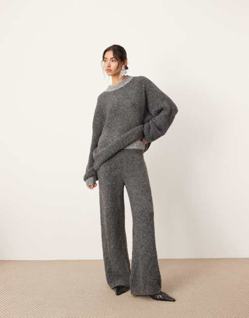 ASOS EDITION boucle knit oversized jumper with contrast neck and wide leg pants in charcoal