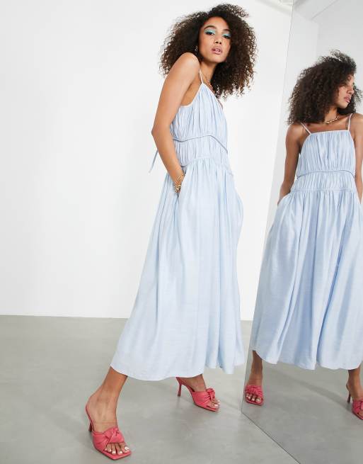 ASOS EDITION cami midi dress with seam details in pale blue