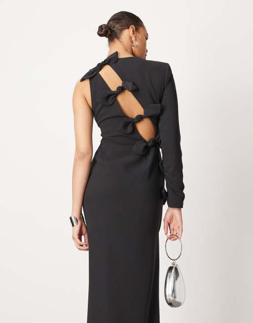 ASOS EDITION crepe one sleeve bow detail maxi dress in black