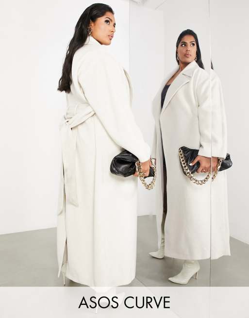 ASOS EDITION Curve belted longline wool mix coat in cream