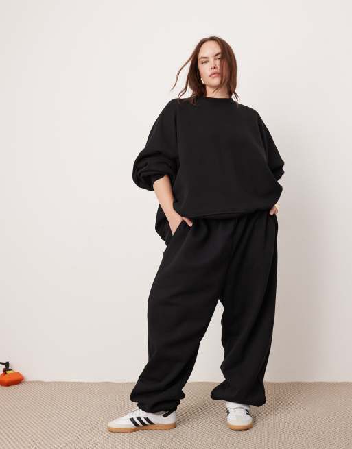 ASOS EDITION Curve premium heavyweight sweatshirt with seam detailing and trackies in black
