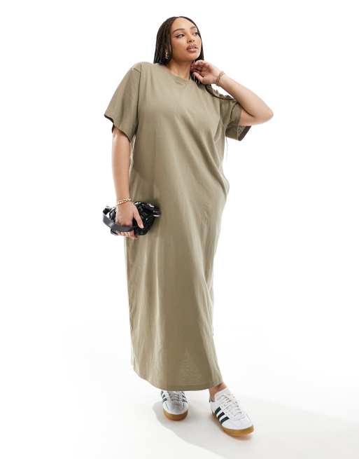 ASOS EDITION Curve premium t-shirt maxi dress with pockets in khaki