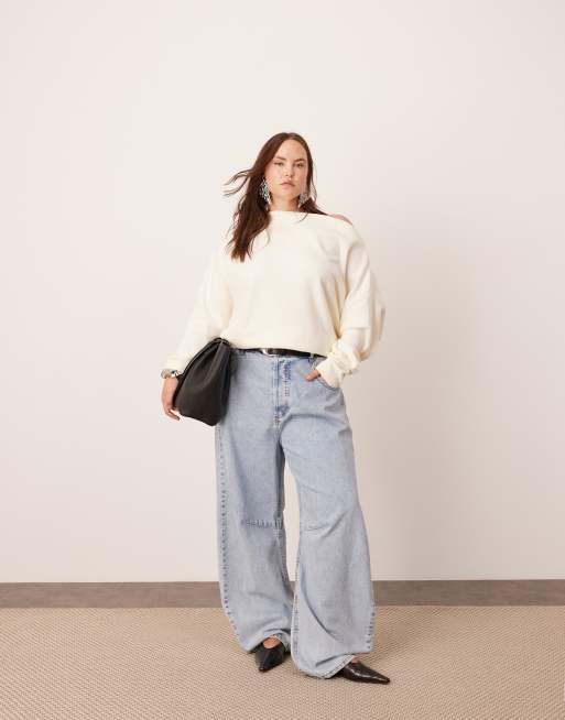 ASOS EDITION Curve Sydney denim barrel leg jeans in bleach wash blue