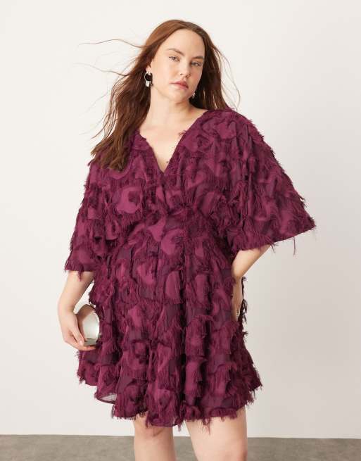 ASOS EDITION Curve textured cinched pleat waist mini dress in plum