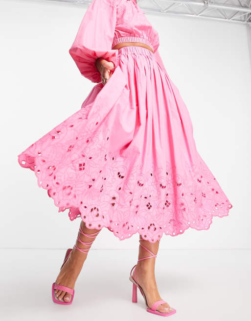 ASOS EDITION floral cutwork midi skirt in fuchsia