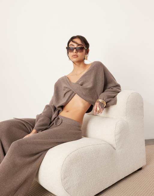 ASOS EDITION knitted slouchy twist detail cropped jumper in chocolate (part of a set)