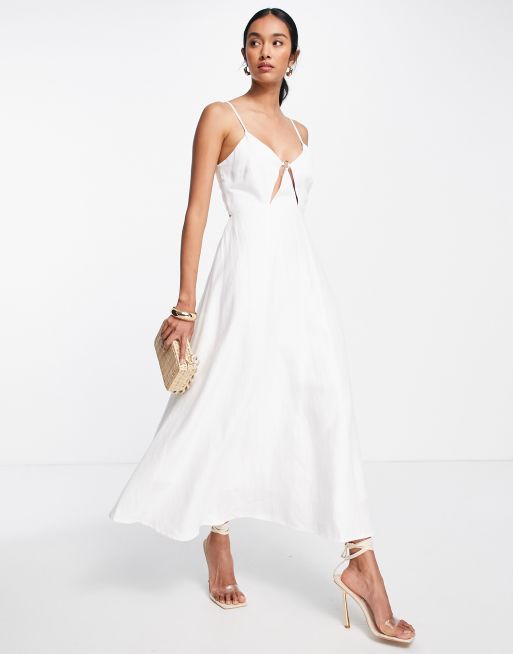 ASOS EDITION linen cami midi dress with cut out detail in white