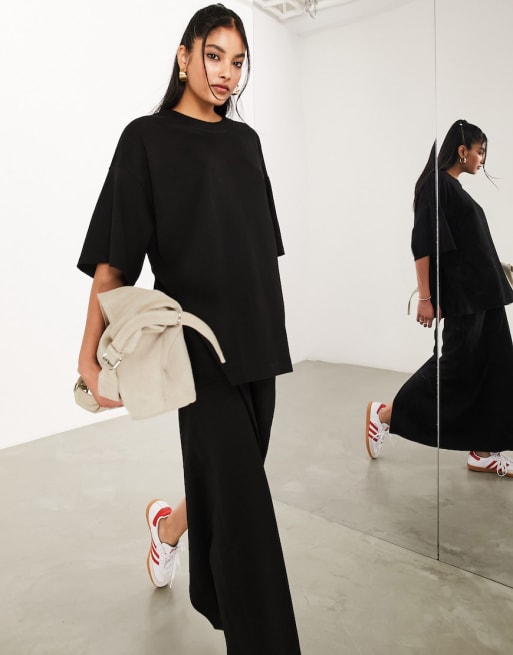 ASOS EDITION premium heavyweight jersey oversized t-shirt and maxi skirt in black