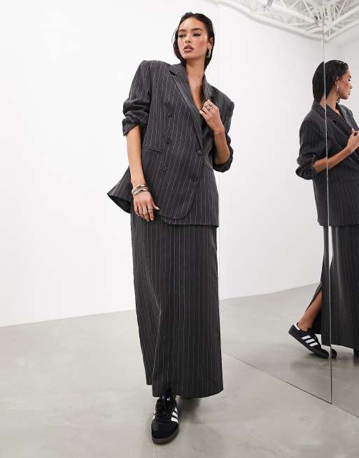 ASOS EDITION tailored maxi skirt in charcoal pinstripe